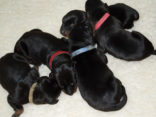 Hier die ersten Bilder der 6 Tage alten Welpen: